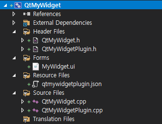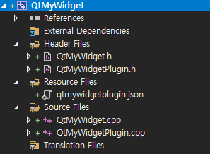 생성된 프로젝트의 파일 구조를 보면 자동으로 MyWidget클래스와 Plugin 명칭이 붙은 클래스 파일이 생성됩니다.