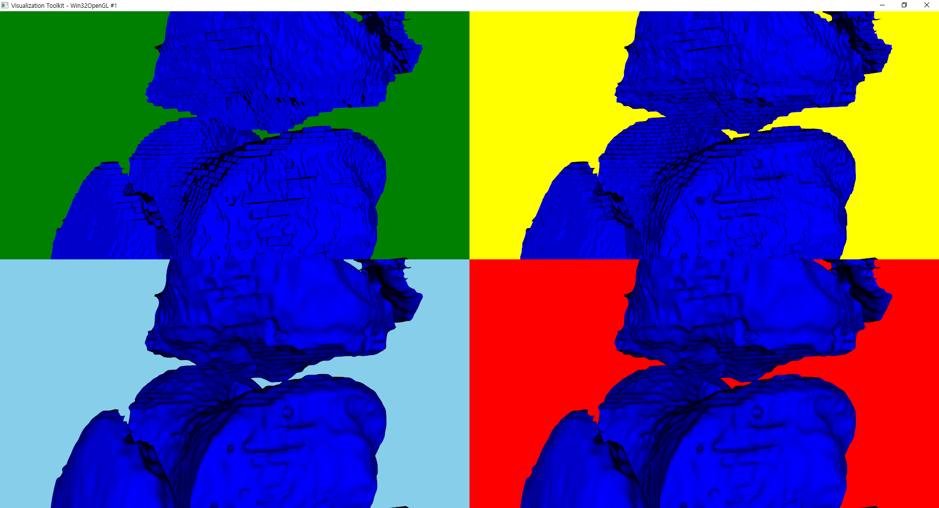 - 적용 분야: 단순한 노이즈 제거와 빠른 처리가 필요한 경우는 vtkSmoothPolyDataFilter를, 메쉬의 정밀한 디테일과 복잡한 구조를 보존해야 하는 경우는 vtkWindowedSincPolyDataFilter를 사용하는 것이 좋습니다.